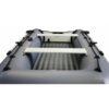 Теперь об отличиях этой лодки. Надувное дно низкого давления наших лодок мы постарались сделать максимально тонким по двум причинам, во -первых: чтобы сохранить комфортную высоту посадки в лодке, чтобы в лодке было удобно сидеть, и ваши колени находились в естественном положении, высота от пола до верха банки по центру 34 см., а это значит вам будет удобно в нашей лодке даже при длительном переходе и рыбалке. Во вторых, минимальная толщина днища дает еще одно преимущество, центр тяжести смещен ниже чем у лодок с толстым днищем, а это положительно влияет на управляемость и устойчивость лодки на воде. При этом благодаря прочным перегородкам днище не переламывает и оно сохраняет форму на всех режимах эксплуатации.
