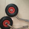 Транцевые колеса, установленные на моторно-гребную лодку ПВХ с жестким транцем, существенно, упрощают транспортировку судна от воды до места стоянки. Закрепляются на транцевой плите при помощи винтов и гаек. Имеют фиксаторы в рабочем и сложенном положении. Надувные колеса позволяют приспособиться к различному типу грунта, изменяя давление в шине.